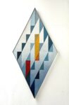 Roy Good’s abstract paintings are minimalist in form, but carry a sublime painterly subtlety when viewed at close hand. Within panels of each work, the colours are intensely worked, although the surface is often pared back so that from a distance it appears smooth. His use of colours creates planes which appear to advance and retreat against each other, although sometimes it is physical rather than illusion – he layers geometric forms so they literally project from the wall.