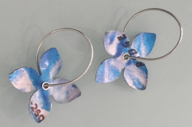 Blue Open Flower Earrings