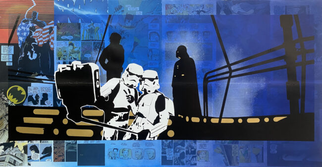 A unique evolution of the artist's Say Cheese series, incorporating pages of a rare Batman comic.
